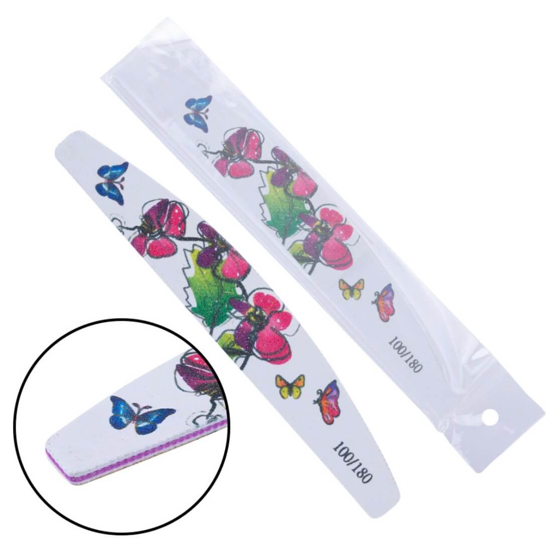 Srednje zrnasta rašpa. Zbog izuzetno fine obrade na rubovima mogućnosti ozljede klijenta prilikom skidanja ili obrade UV gela znatno su smanjene. Ovom turpijom možete napraviti završnu obradu gel noktiju.