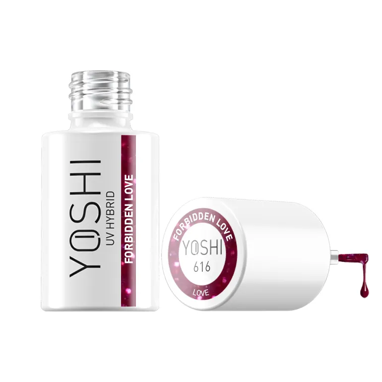 YOSHI gel polish Forbidden Love 616 je intenzivna, tamnoljubičasta boja upotpunjena svjetlucavim zrncima, koja u sebi nosi dašak misterije i uzbuđenja. Forbidden Love je savršena boja za večernji izlazak, za žene koje vole nekonvencionalna rješenja.